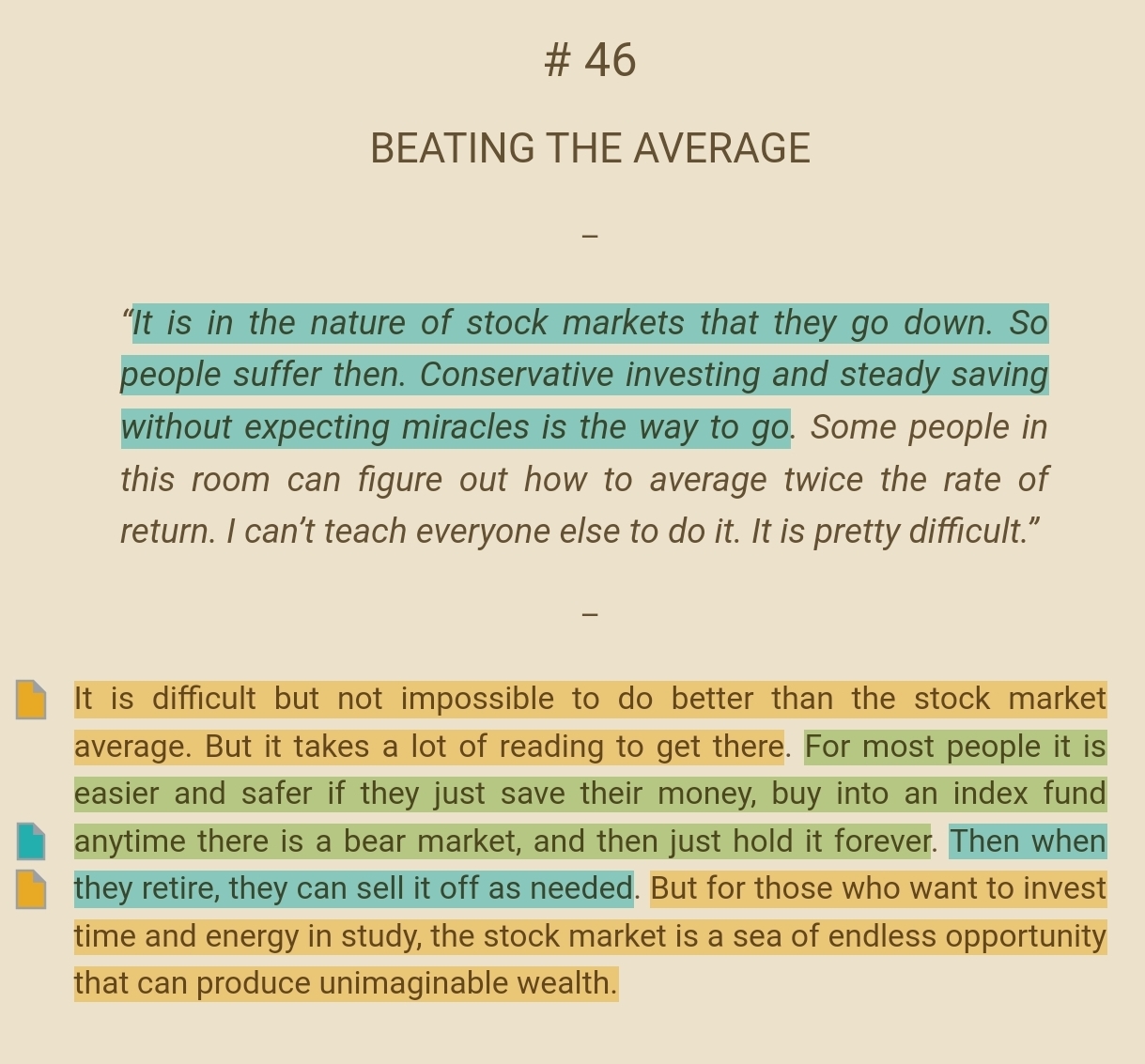 As I read, I will highlight the good quotes and make my own notes. This is the same when I listen to news, interviews or youtube investing videos.
