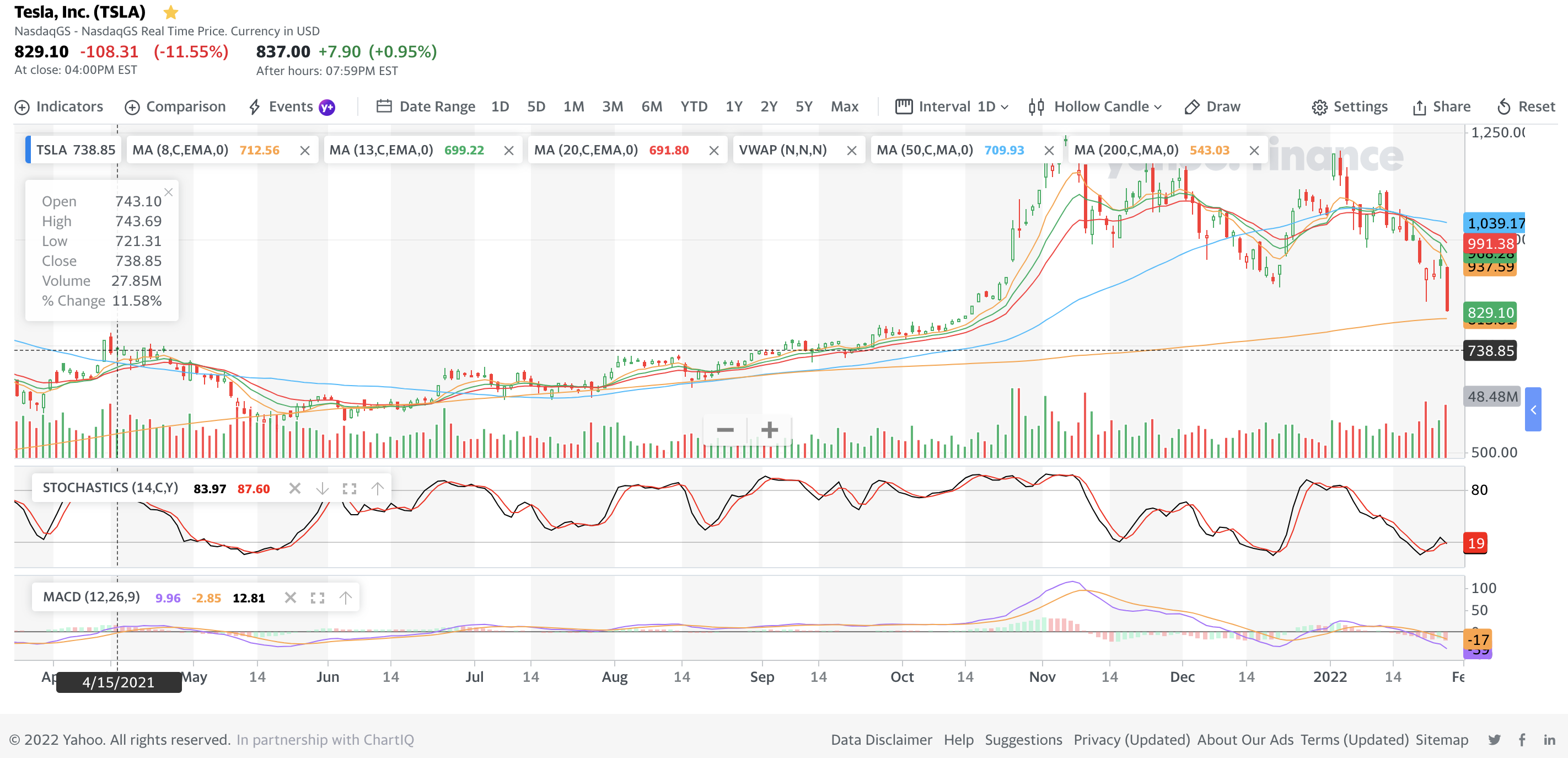 My investing muse - what could have caused the 11% drop in Tesla price (28Jan2022)
