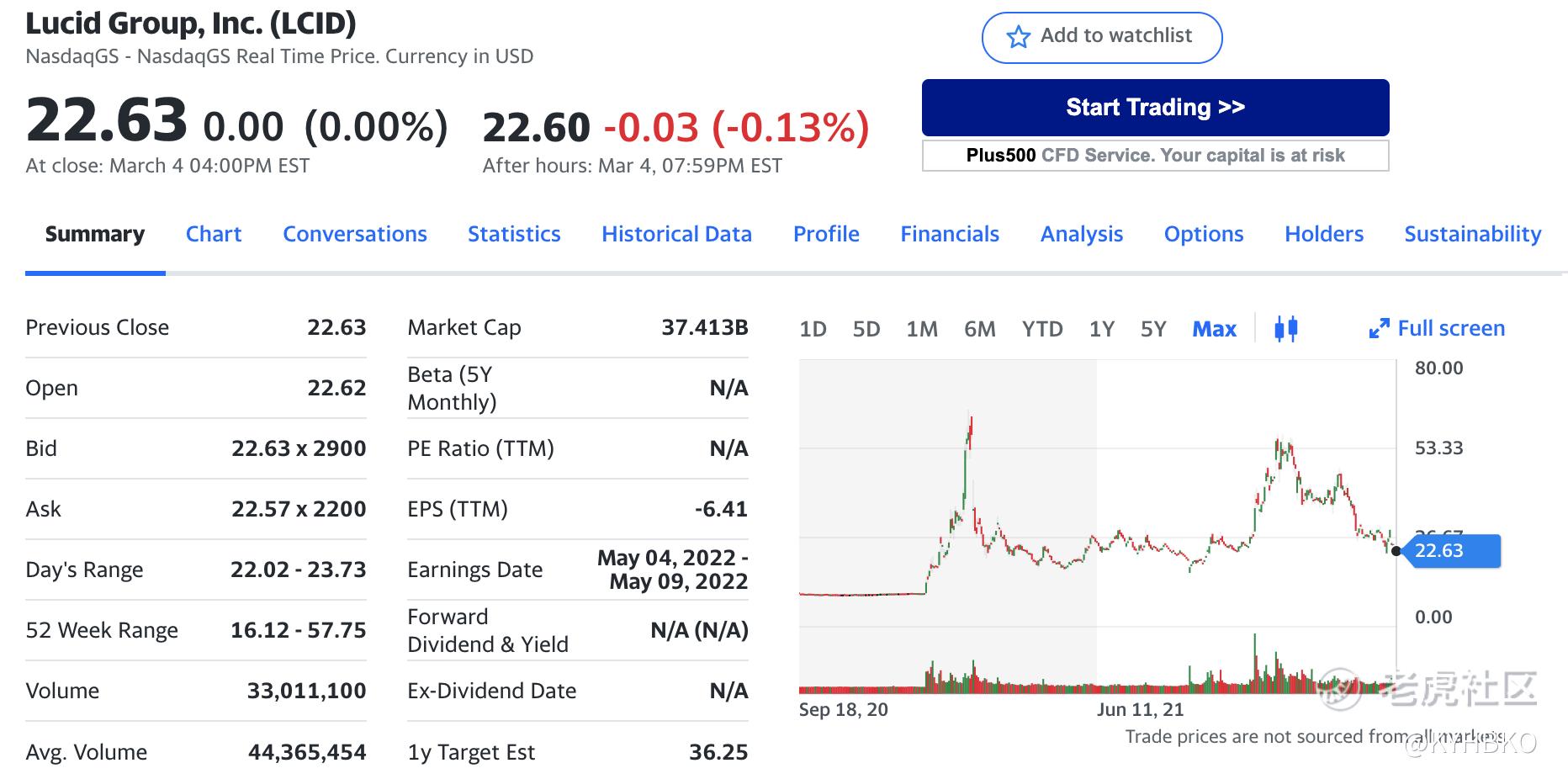 Lucid Group overview (Yahoo Finance)