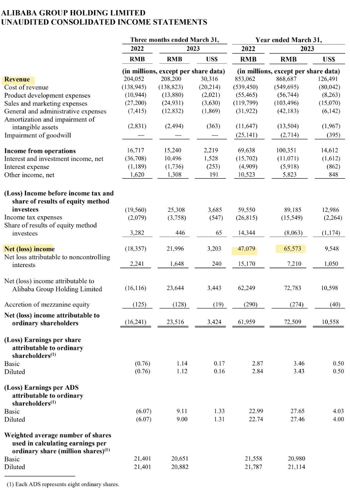 Analysis of Alibaba's latest earnings (18 May 2023)