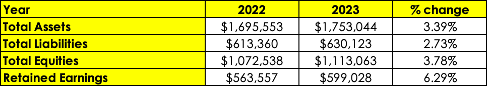 It is good that the growth rate in assets is greater than that of liabilities. Thus, it is not surprising to note that total equities have grown by 3.78%.
