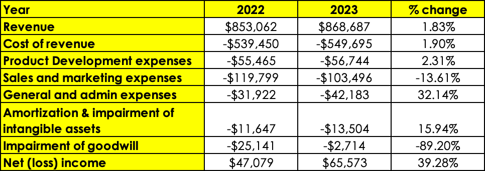 From the income statement (comparing the years ending 31 March for 2022 & 2023), here are my observations: