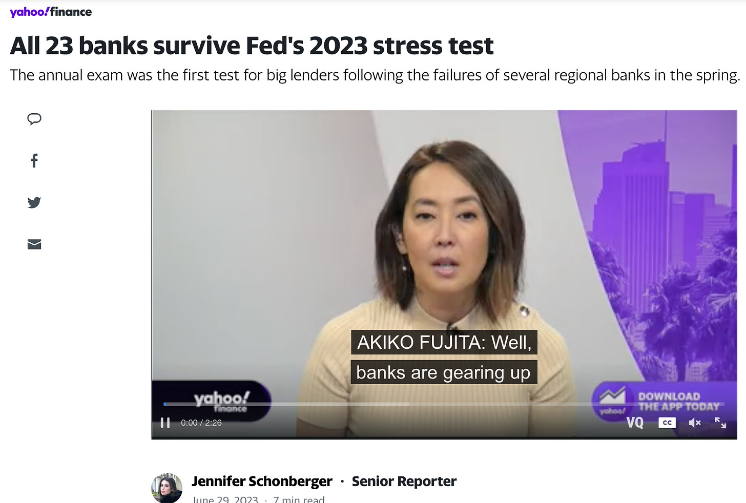 As per the news screenshot above, all 23 banks have survived the recent stress test by The Federal Reserve.