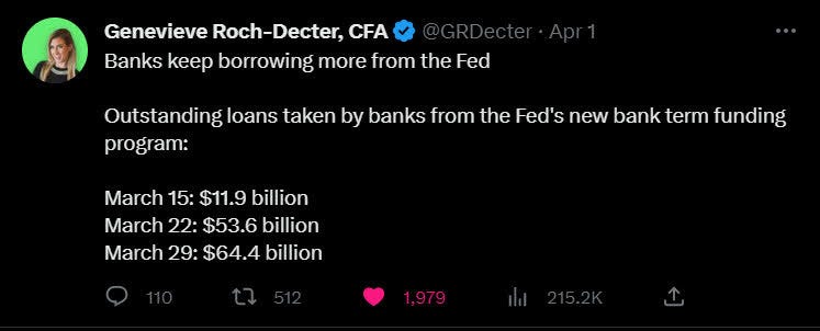 Until the borrowing stops, it is hard not to have any concerns about the banking sector. With the Fed offering such loan facilities to prevent banking liquidity challenges, the Fed ends up taking more risks in the banking sector with default risks in play.