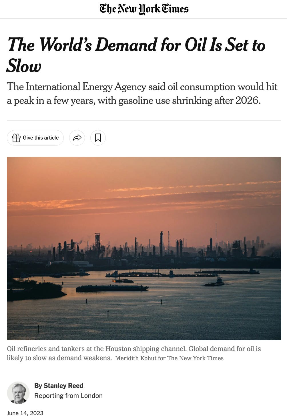 In the New York Times article above, it mentioned about a drop in oil after 2026: