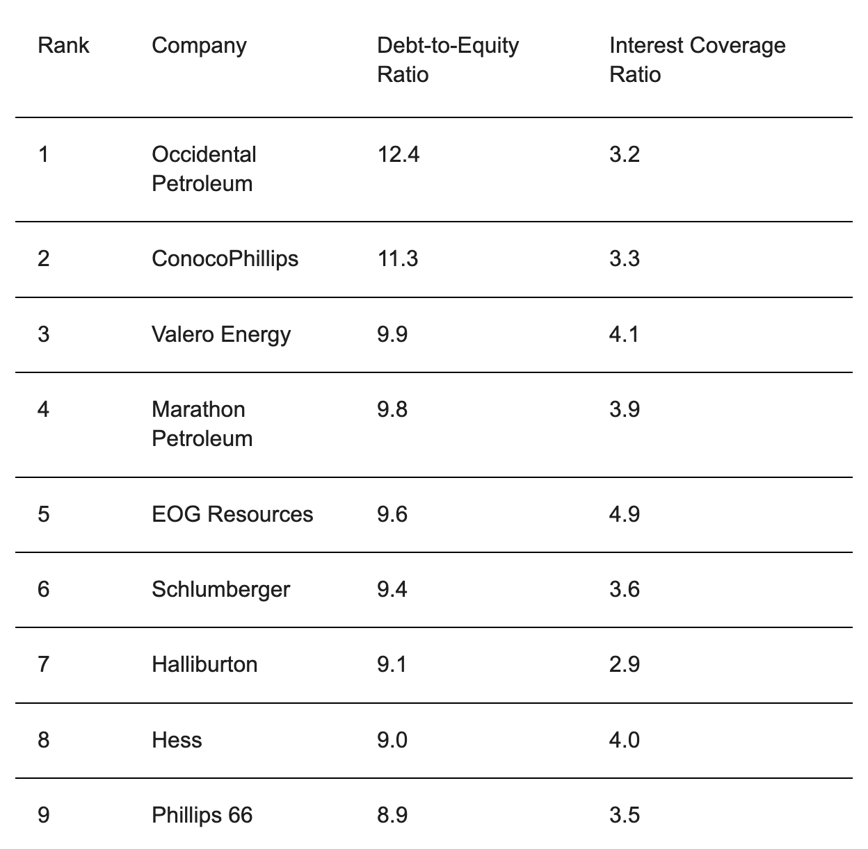 I have reached out to Google Bard to help to research this using the S&P500. My search starts with debt/equity ratio which should be as low as possible. I will also look into other components such as cash flow, liquidity and profitability. If the business is not making profits, incurring more debts and has cash flow issues, the risk of default increases significantly. Interestingly, some of the companies with (high) risks of default include Occidental (which was invested by Mr Buffett), Marathon, and Phillips 66 ~ most of these are from the oil/gas. Looking at the Debt/equity and interest coverage ratio is just the start. Let us look into the financials in detail and do not forget qualitative components such as branding.
