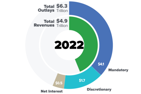 As of 2022, Federal revenue was $4.9T and the Federal outlays were $6.3T. This leaves us with a Federal deficit of $1.4T for 2022. The US Federal government is unable to spend within its means (revenue).