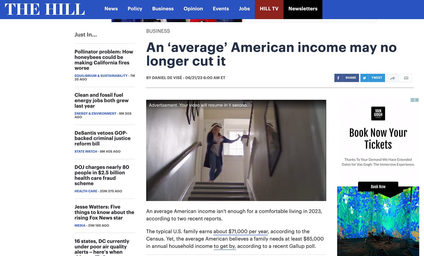 The typical U.S. family earns about $71,000 per year, according to the Census. Yet, the average American believes a family needs at least $85,000 in annual household income to get by, according to a recent Gallup poll.