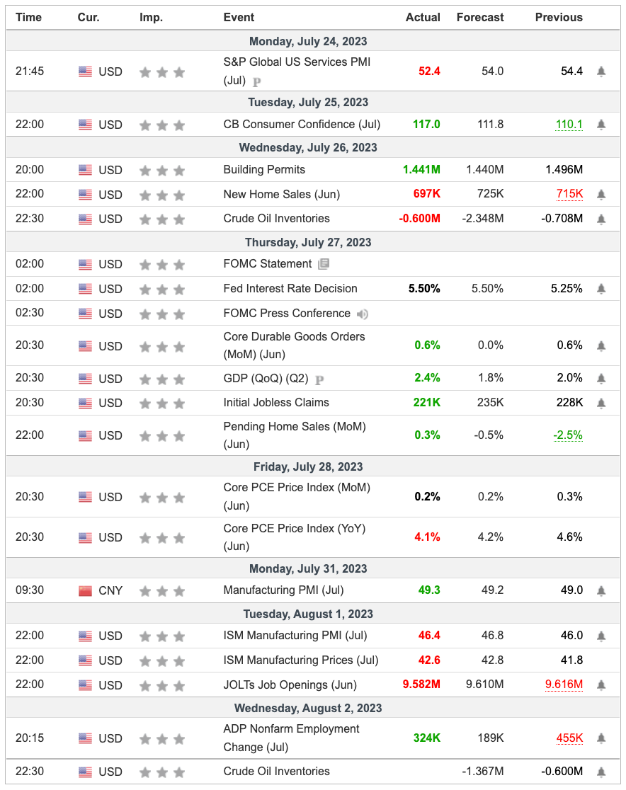 The recent LEI, LMI and recent PMI (goods) are still not trending correctly. This week, we will see the PMI (services) that are likely to trend above 50 (implying growth). there is also an improvement in the shipping volume in July 2023. With Core PCE around 4.0%, it is still far from the Fed's target. So, I would say that the signs of economic recovery are there but we need more data to confirm.