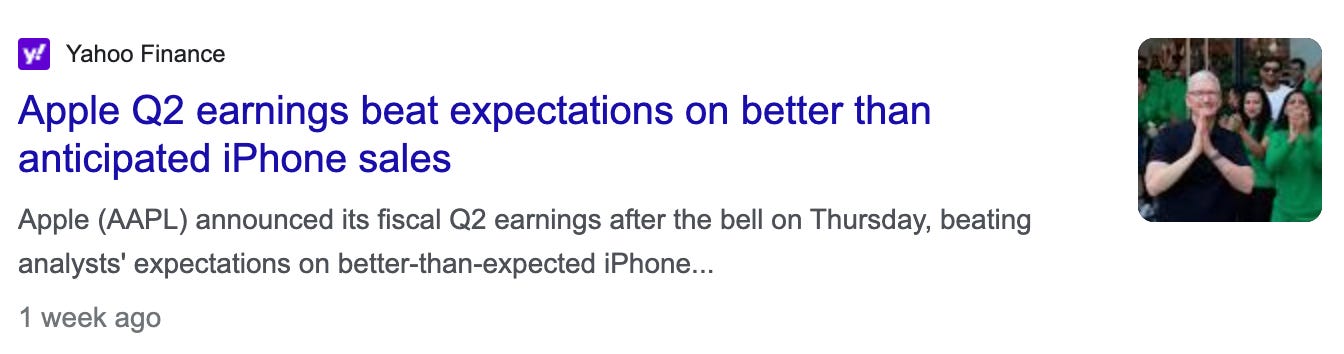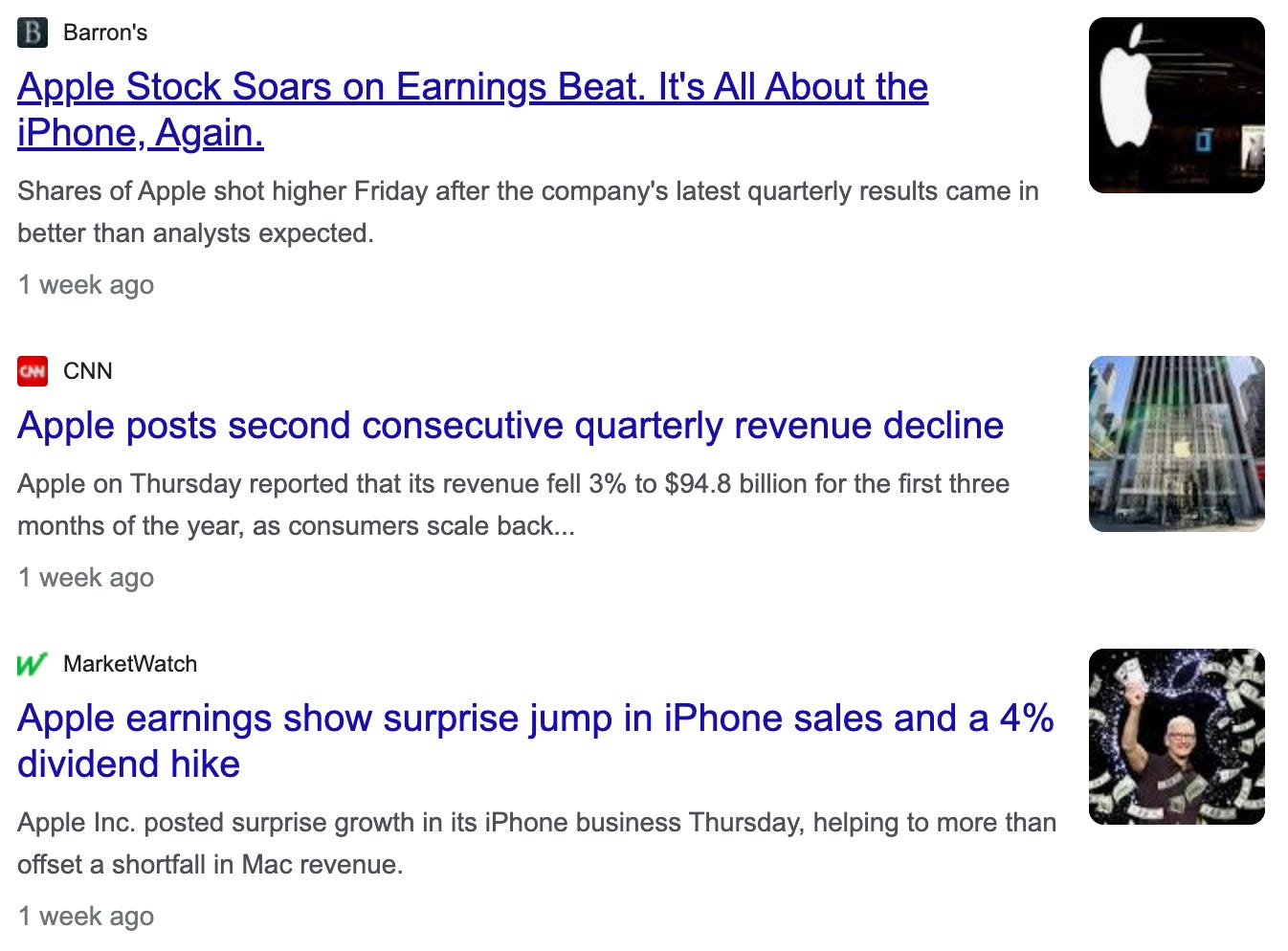 Here are some of the news extracts pertaining to Apple’s recent earnings:
