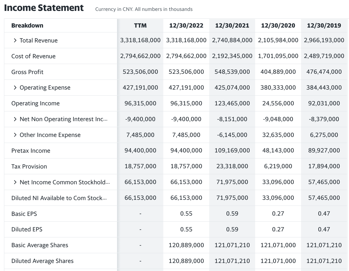 Since 2019, we can see that revenue has been improving since 2020 and hit a record of CNY$3.3T in 2022. The net income fluctuates between CNY$33B to the latest $66B by 2022.