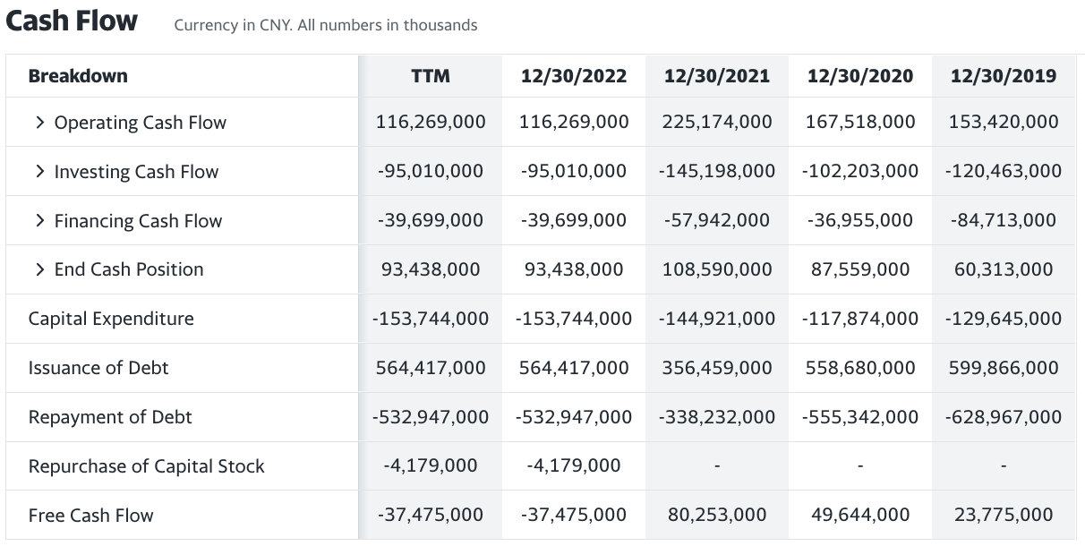 For cashflow, I have concerns that FCF reached a negative CNY$37B for 20222, largely due to CAPEX of $153B and the repurchase of Capital Stock at $4.1B