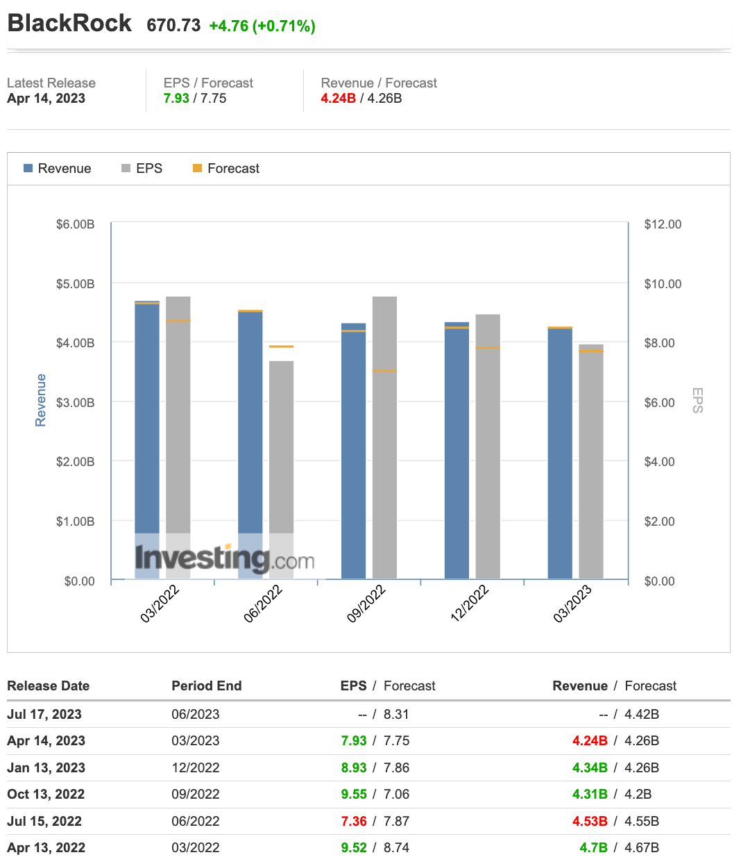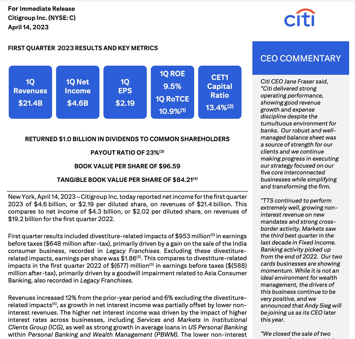 3 of the Big 4 banks (JP Morgan, Citibank & Wells Fargo) have released their earnings with BlackRock before the opening of 14 Apr 2023 market.