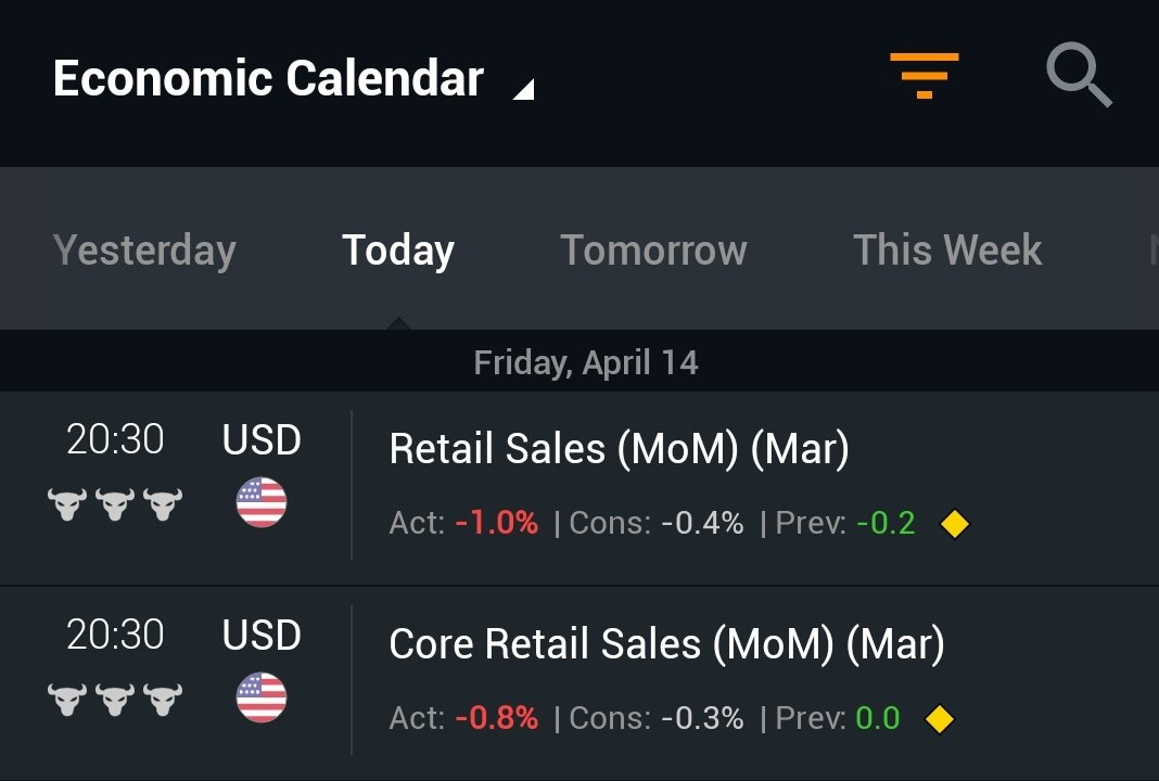 Retail Sales (MoM) and Core Retail Sales (MoM) came out disappointing compared to the forecast. It looks like there is lesser consumption (demand erosion) in the US economy.