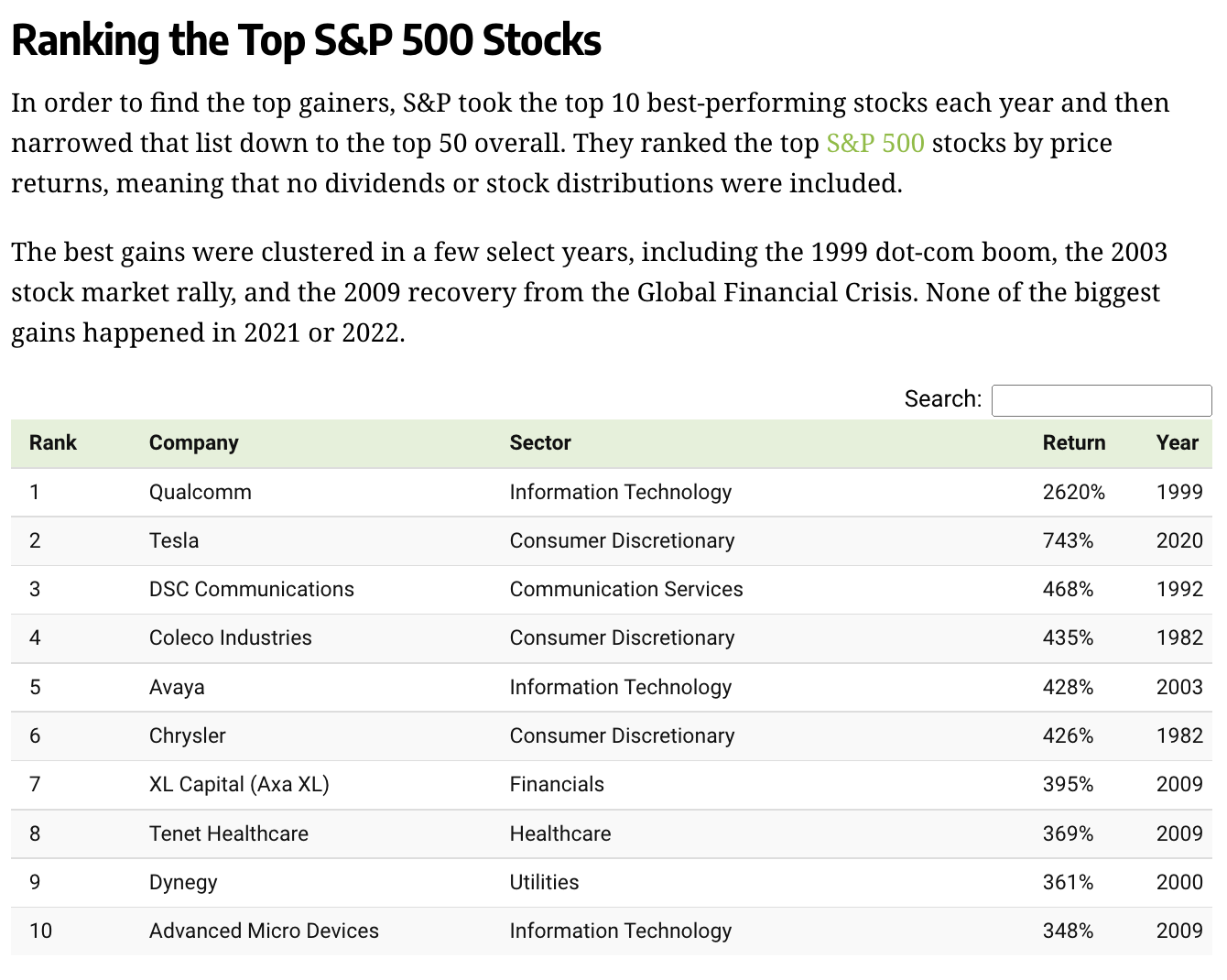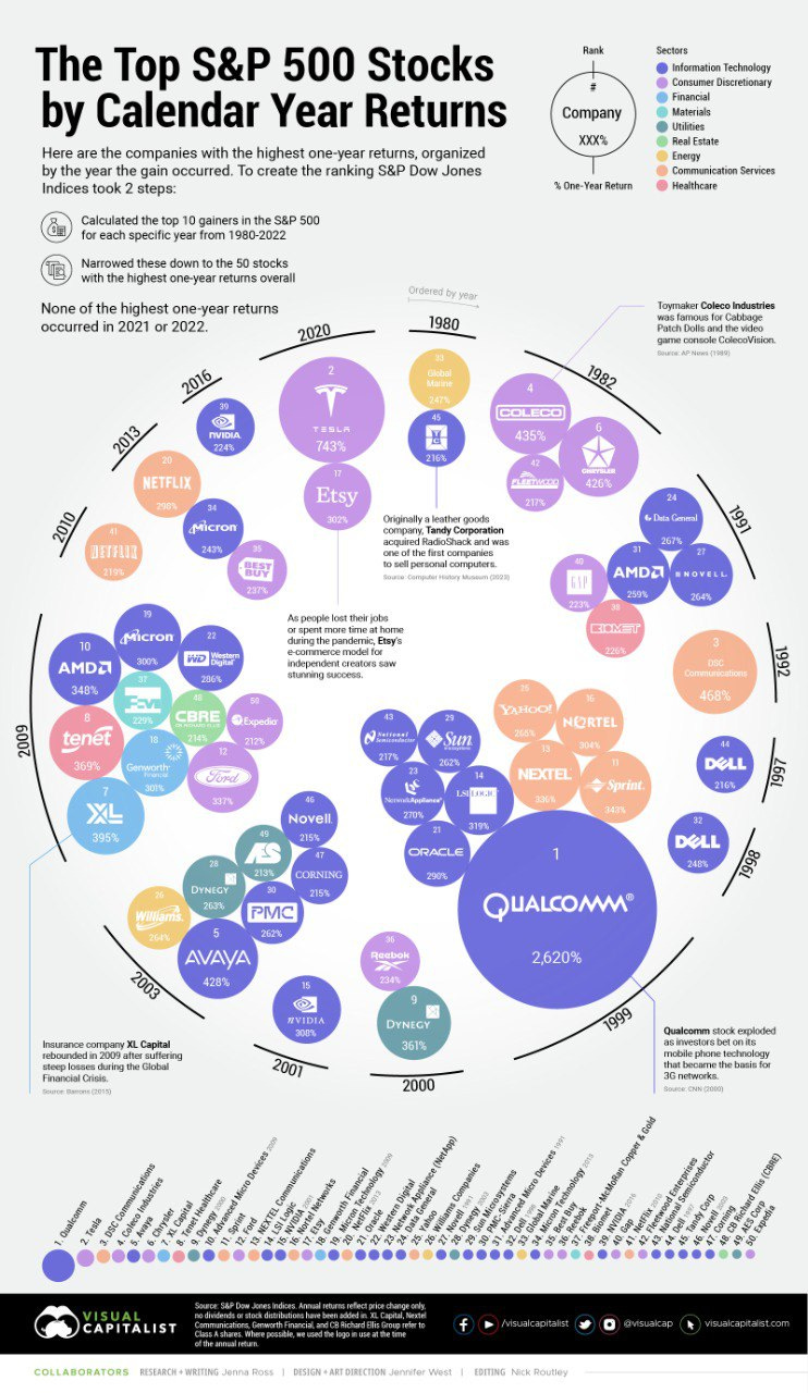 Visual Capitalist has published a list of the top S&P500 stocks by annual returns for 2022.