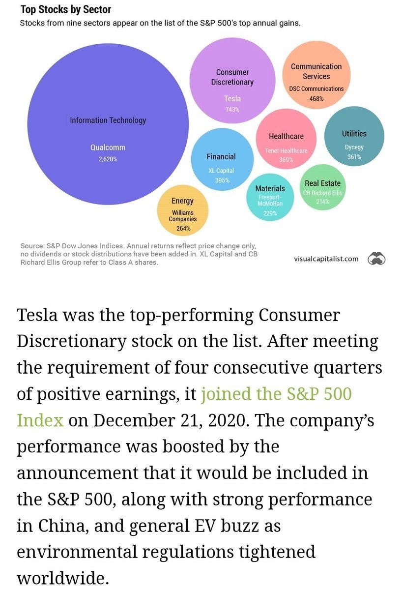 In the consumer discretionary sector, the top-performing company is Tesla in 2020.