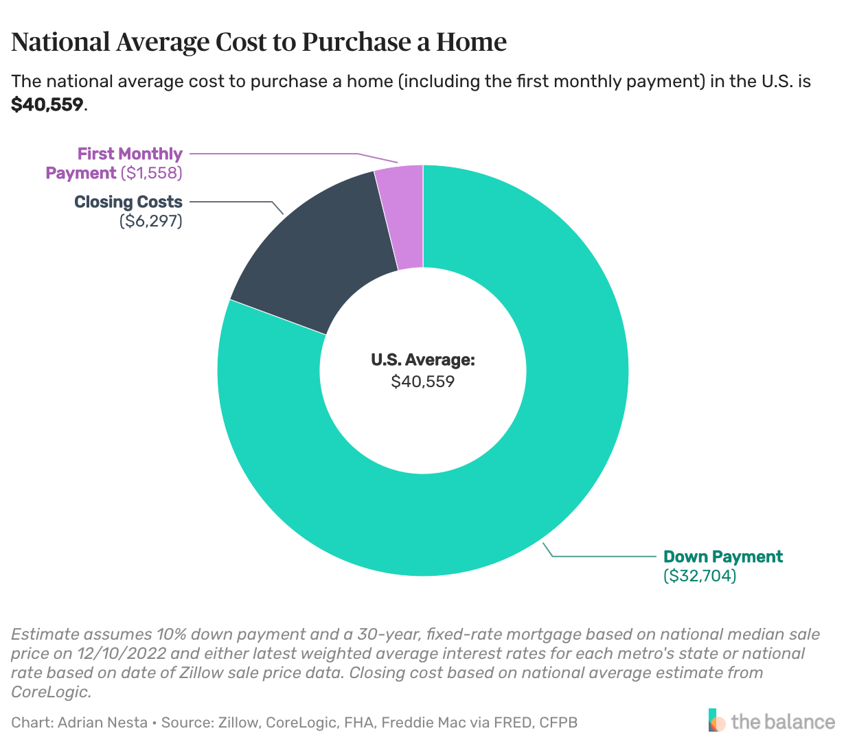 The average upfront cost to buy a new home in the U.S. is $40,559. However, this varies from the city. It could be close to $120K in San Francisco and $71K in New York City.