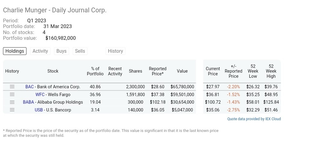 Update to Charlie Munger's portfolio ~ Q1/2023 > did he sell off his banking stocks? (04Apr2023)
