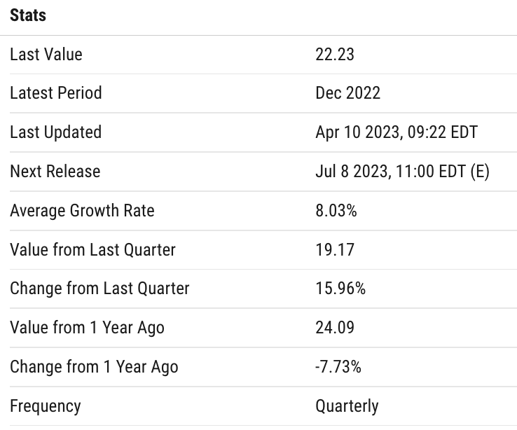 - The drop in EPS from 1 year ago to Q4/2022 is 26.57%