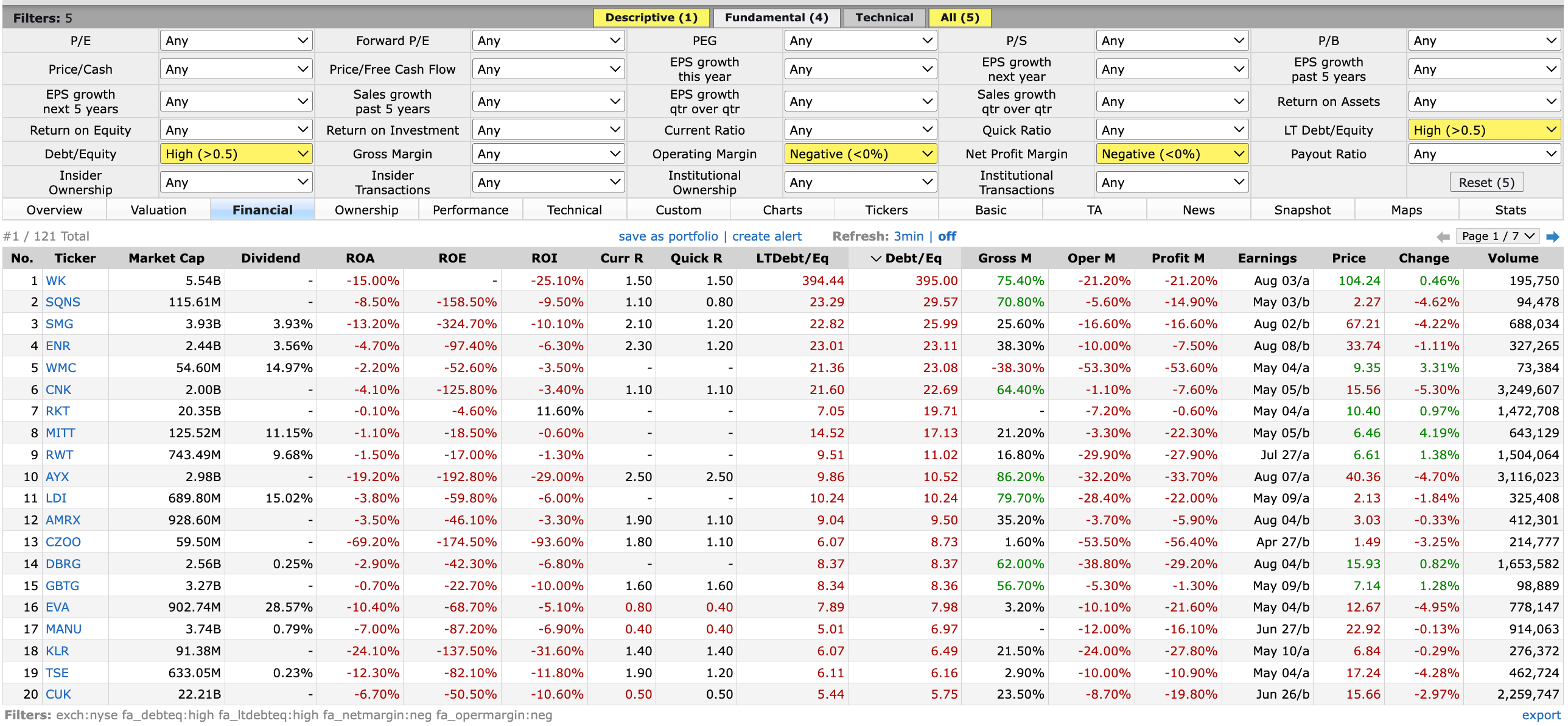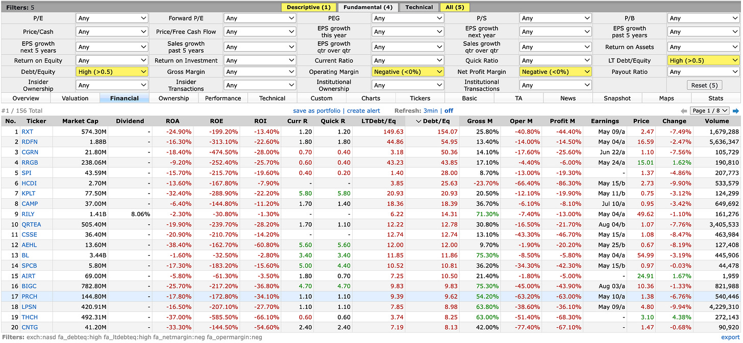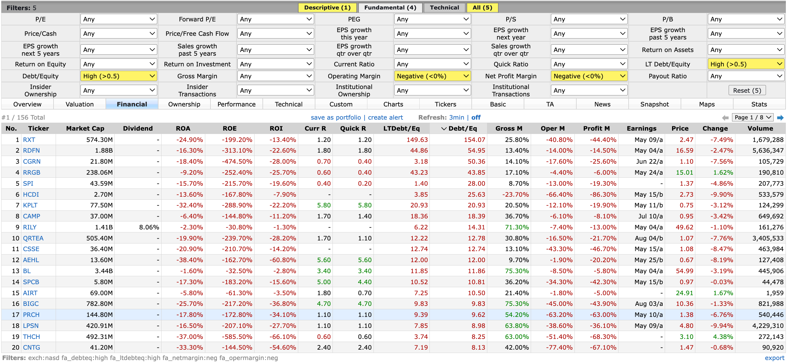 With the “high interest-rate” environment, I plan to screen for companies which may be at risk. However, these can be at risks of going under or can be turnaround plays.