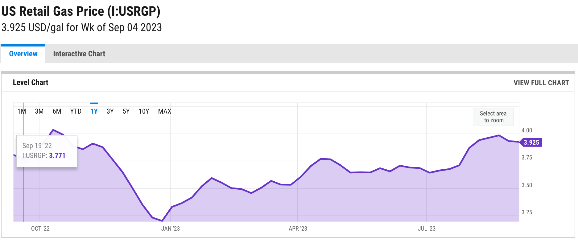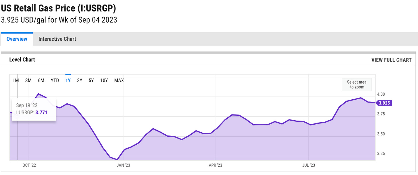 Since Jan 2023, US retail gas prices are on an uptrend. This sounds like “inflation inbound”.