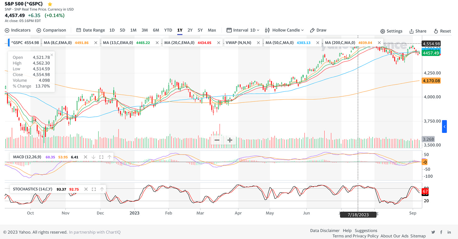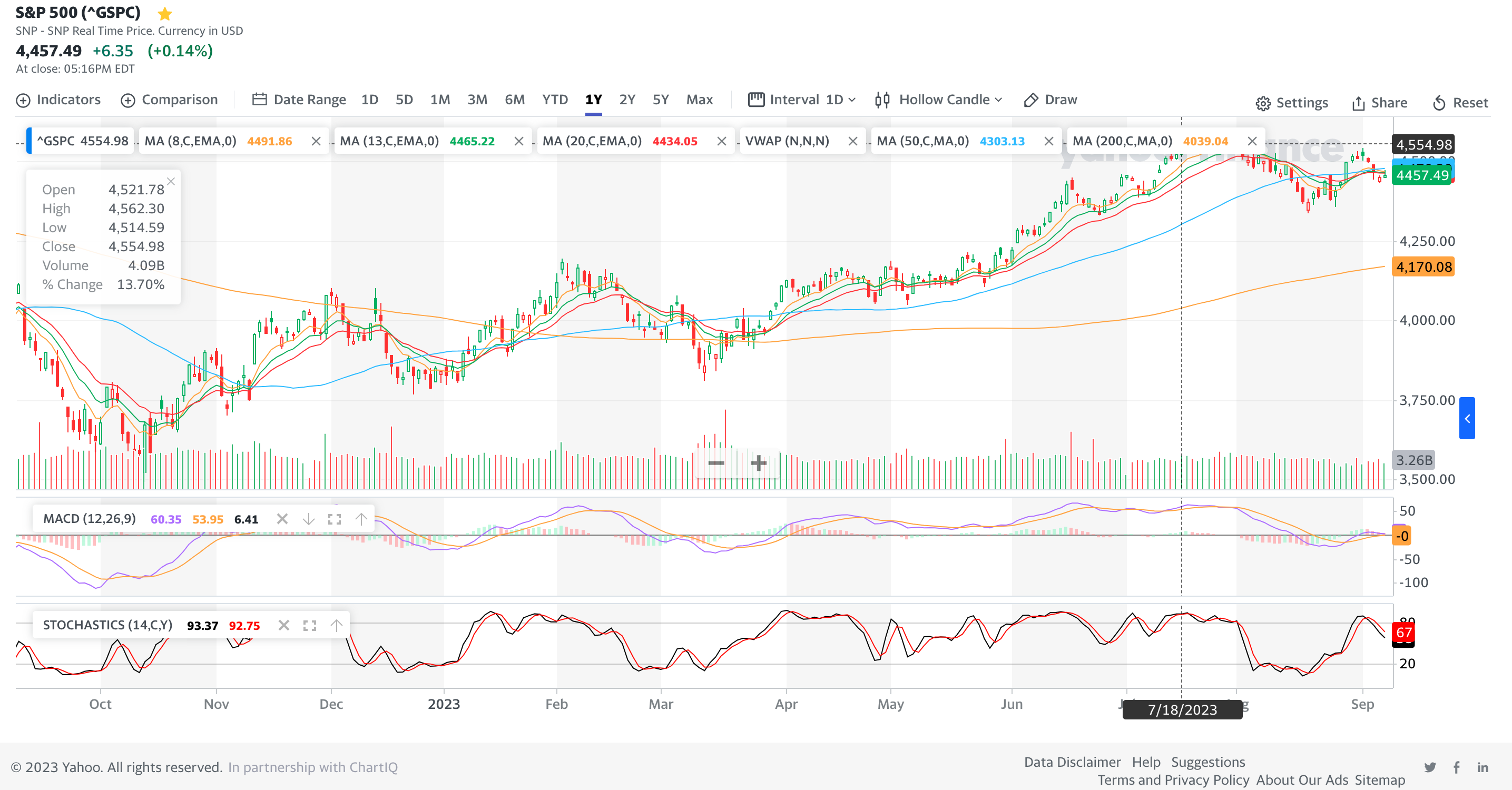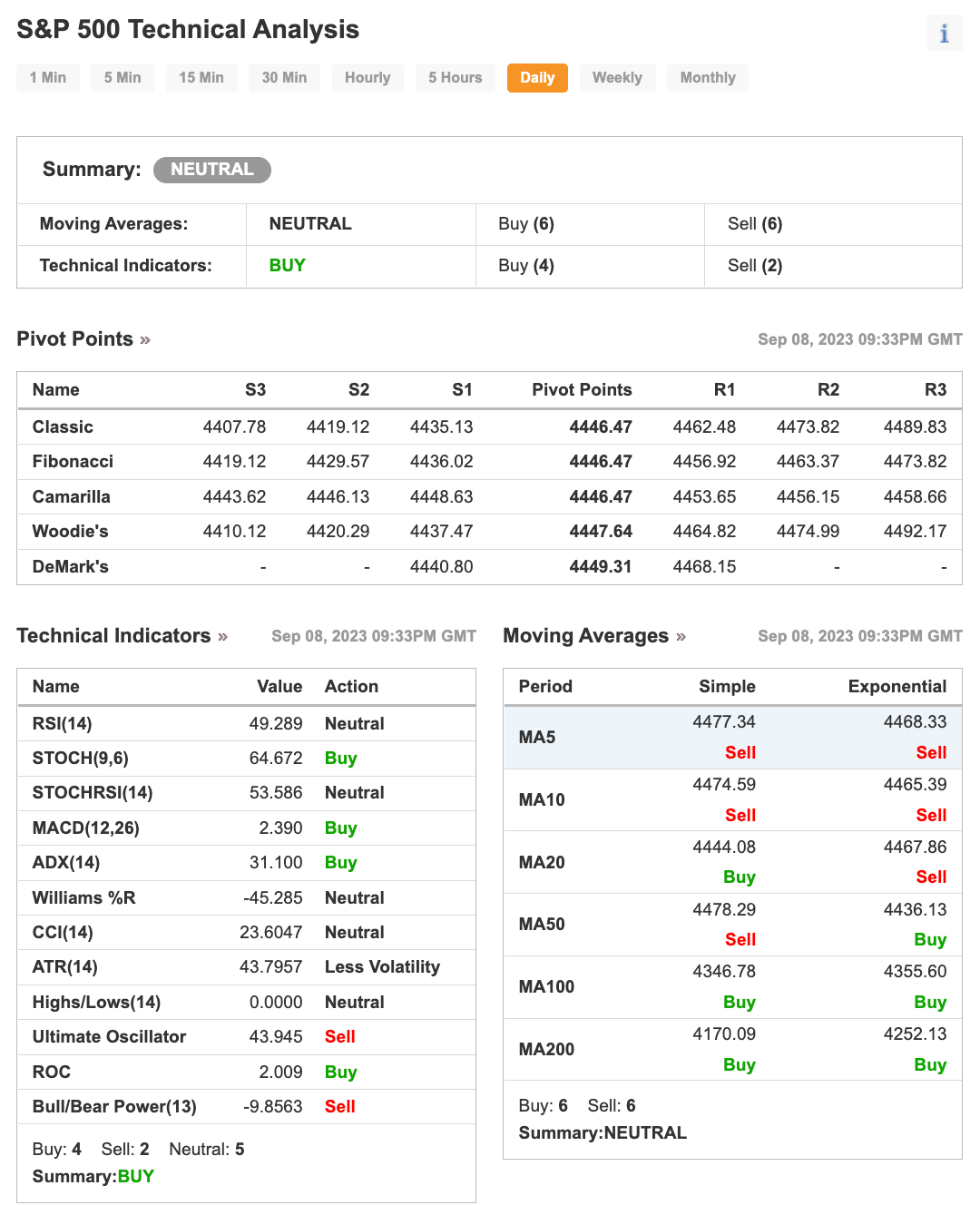 From the 1D technical indicators above, there are a total of 10 (Buy), 8 (Sell) and 5 (Neutral). Investing recommends a “NEUTRAL” recommendation based on the technical indicators above (1D chart for S&P500).