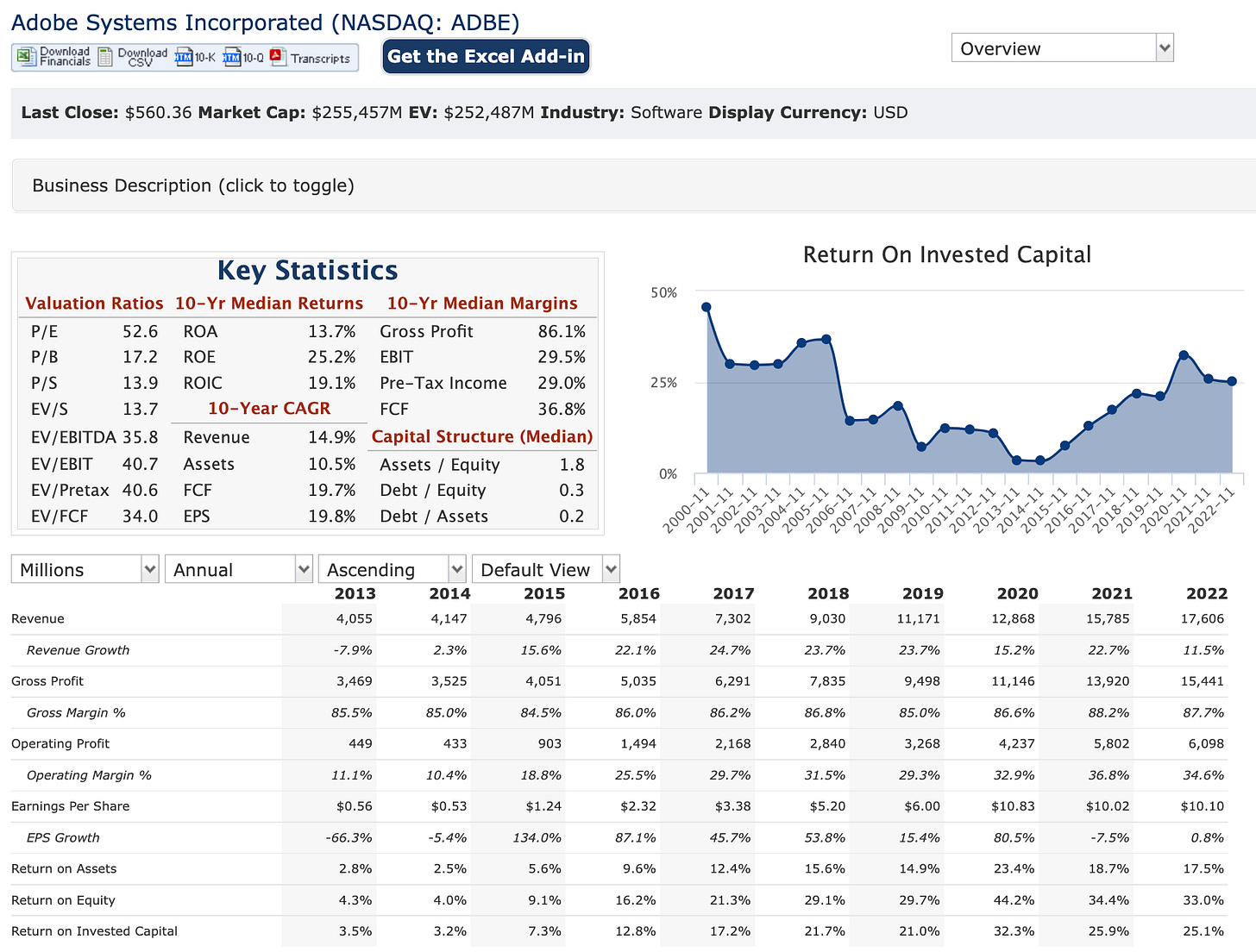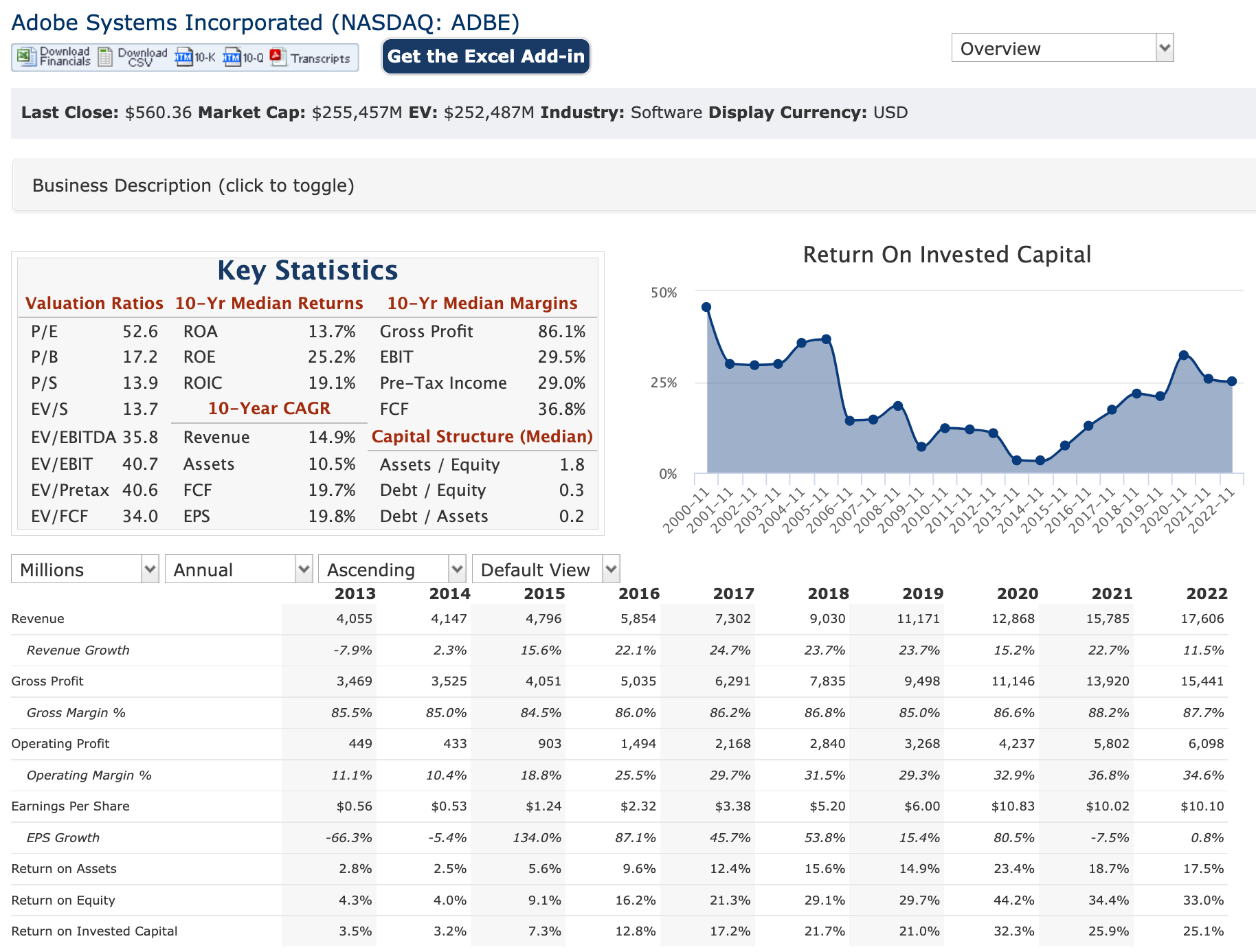 From the above, we can see an impressive growth of the business over the last 10 years. Revenue has surged 4x from $4B (2013) to $17.6B (2022). Operating profit has surged from $449M (2013) to $6,098M (2022) - this is a good 13.5x in terms of profitability. EPS’s growth is impressive from $0.56 (2013) to $10.10 (2022) - a solid 18x. To qualify a business, we will also need to look at the balance sheet, cash flow and identify the various competitive advantages that they have (moat). However, it is looking good at this stage.