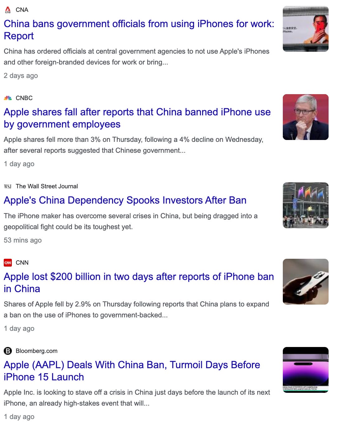 China announced an Apple’s iPhone ban for government employees. This has led to Apple losing $200B in 2 days. This could rippled to other sectors as Apple and Huawei were caught in the crossfire of trade sanctions.