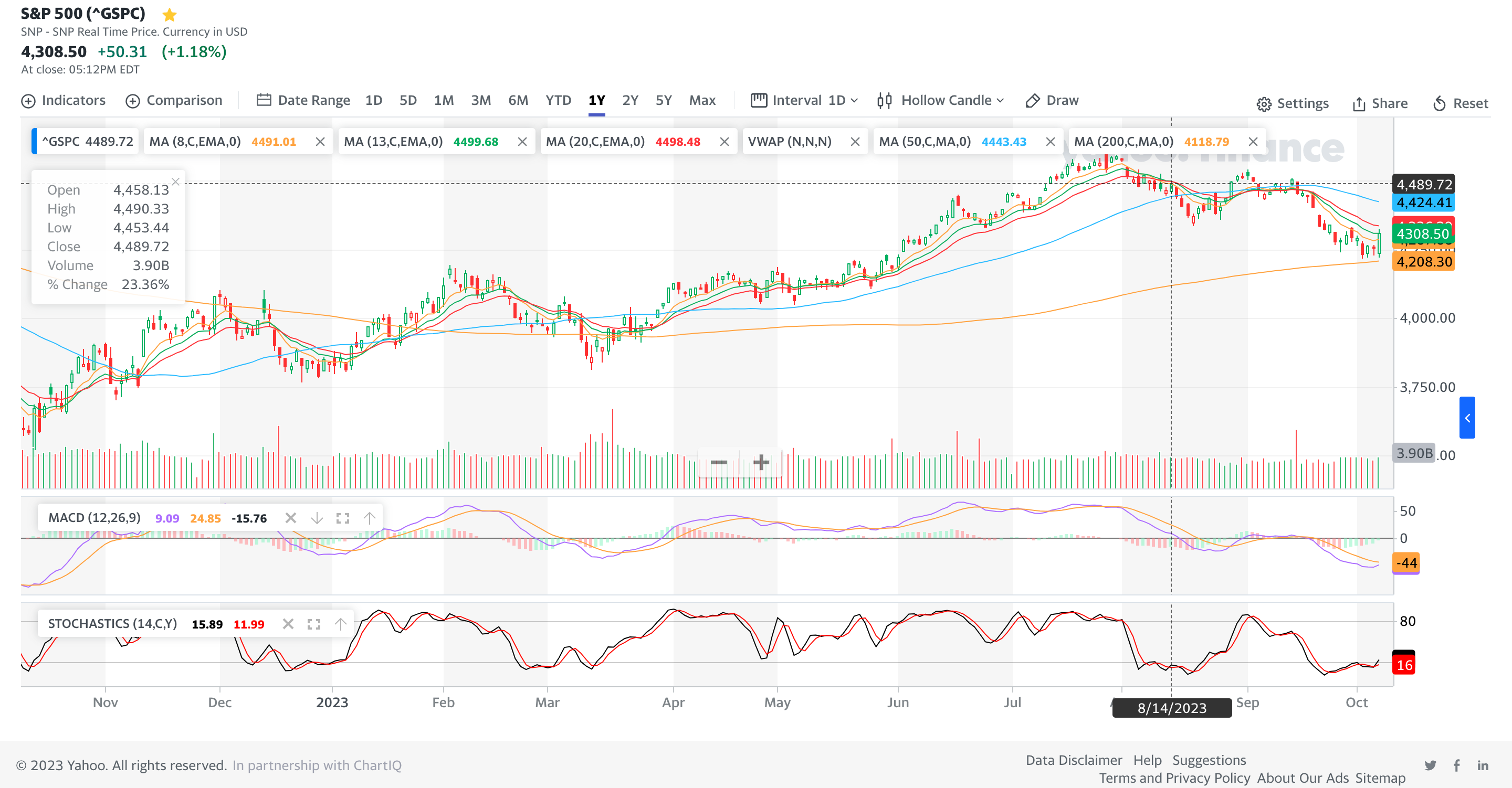 From the 1 year chart above, the S&P500 is on a downtrend.