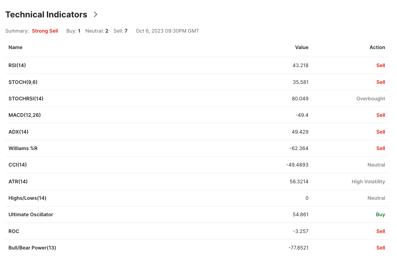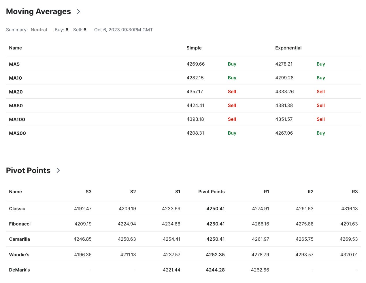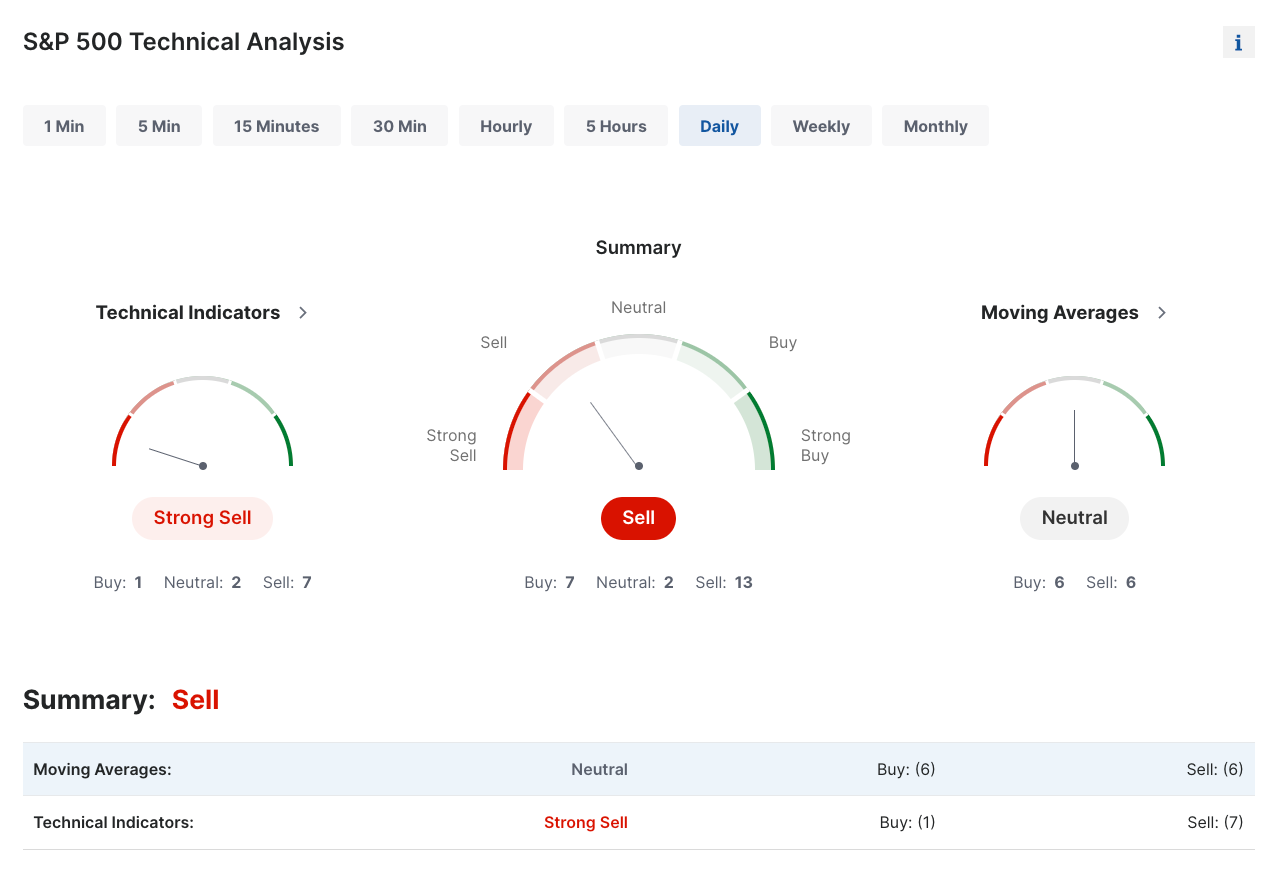 From the 1D technical indicators above, there are a total of 7 (Buy), 13 (Sell) and 2 (Neutral). Investing recommends a “SELL” recommendation based on the technical indicators above (1D chart for S&P500).
