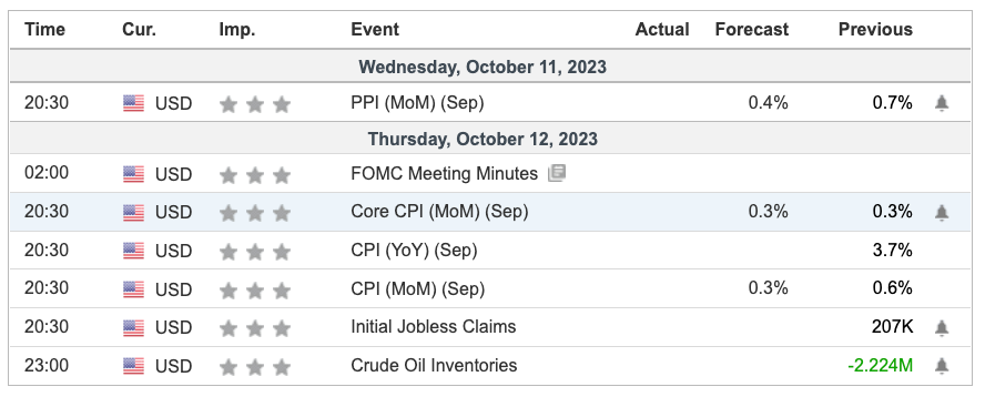 As I was penning this weekly post, the news of war in Israel flooded my social media feed. The most anticipated event for the coming week prior to this news was the CPI announcement.