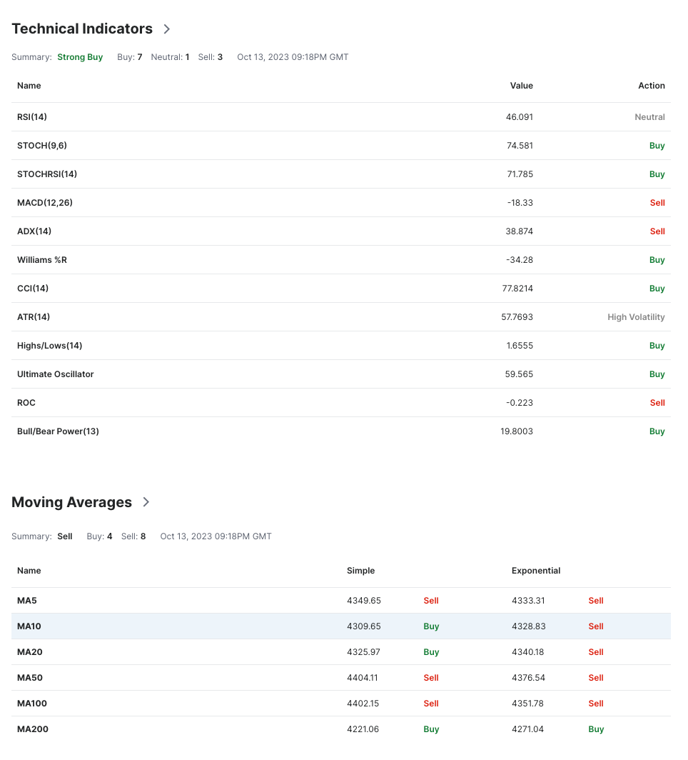 From the 1D technical indicators above, there are a total of 11 (Buy), 11 (Sell) and 1 (Neutral). Investing recommends the “NEUTRAL” recommendation based on the technical indicators above (1D chart for S&P500).