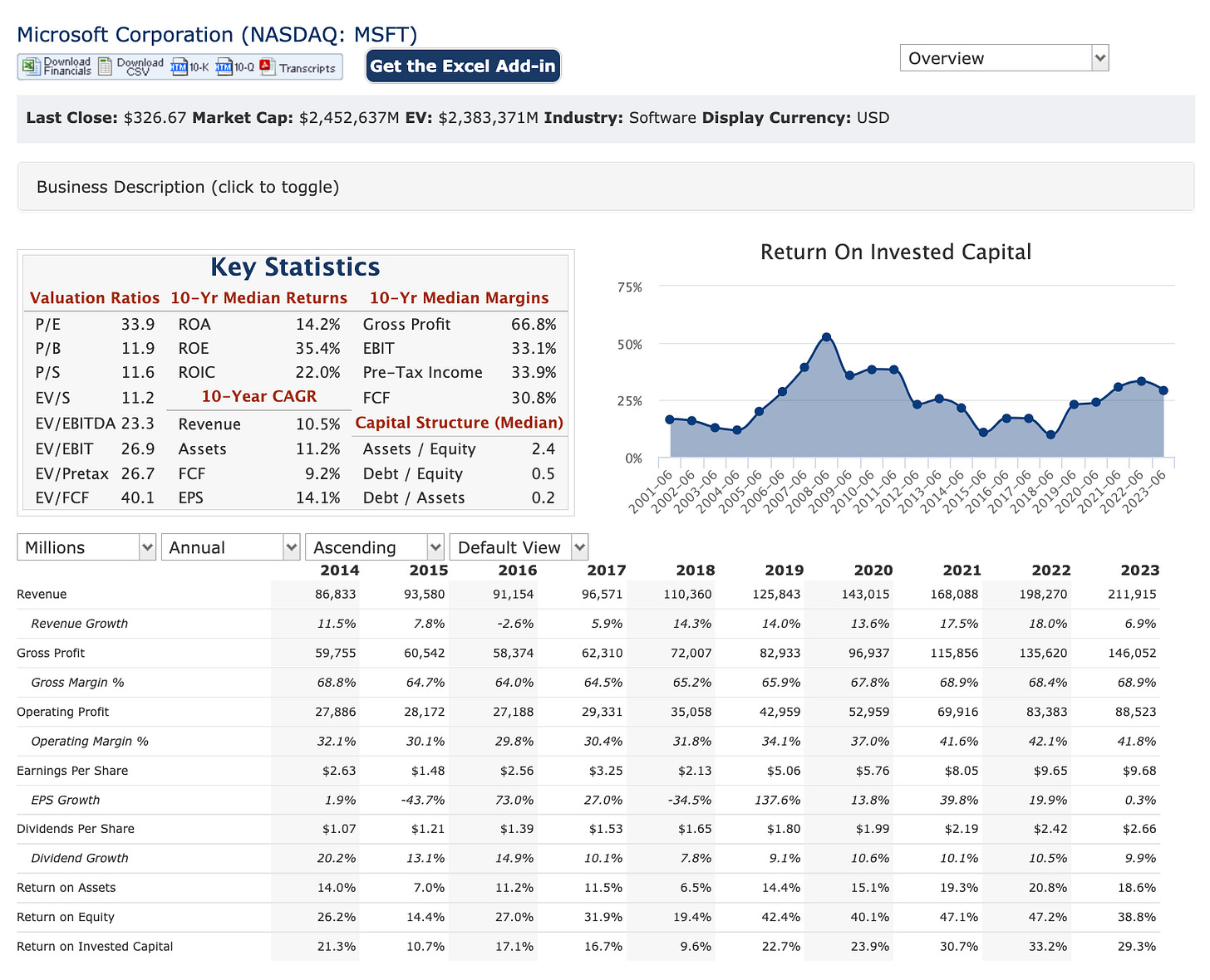 - EPS grew from $2.63 (2014) to $9.68 (2023)