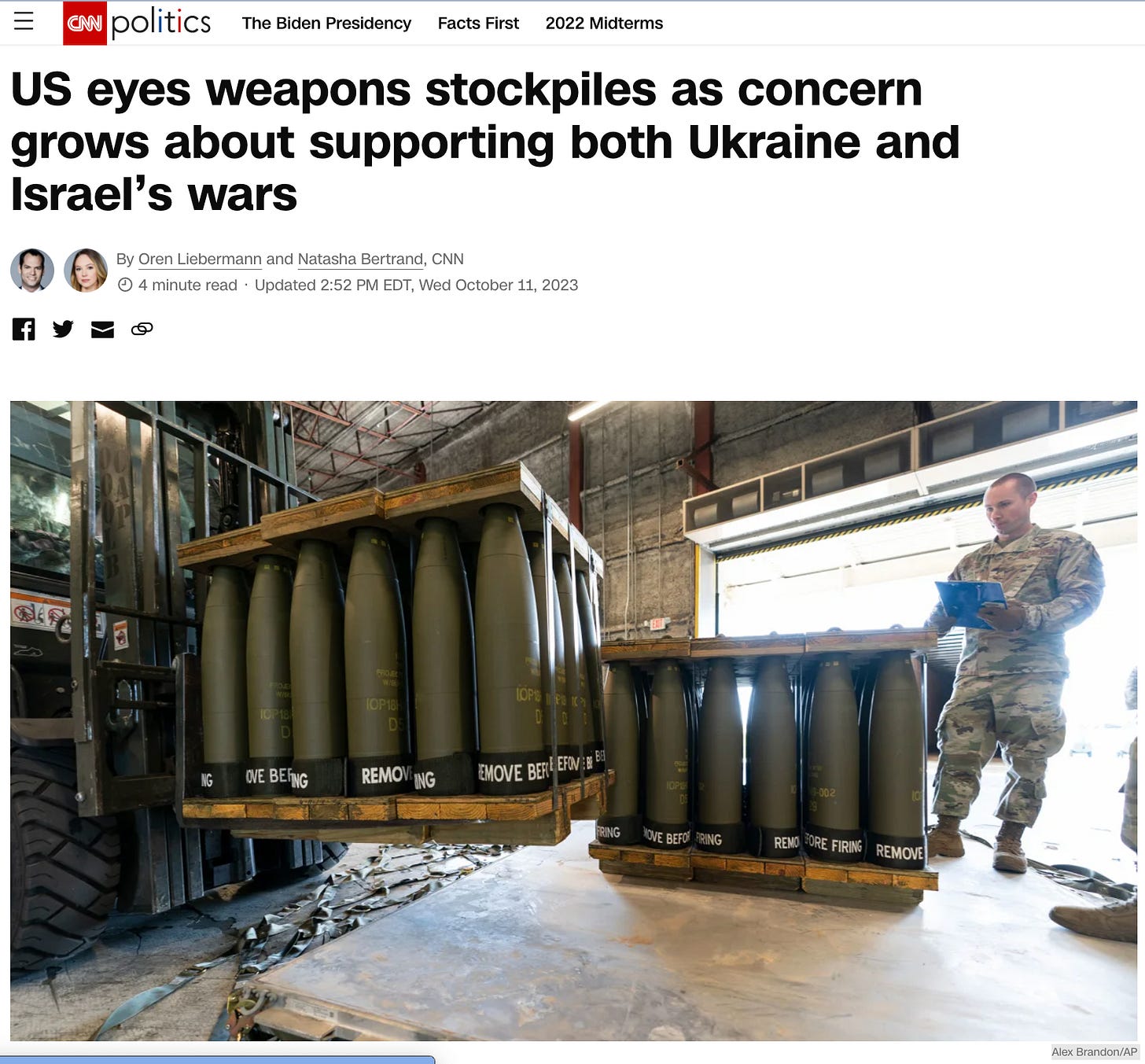 Concern is growing within the Pentagon over the potential need to stretch its increasingly scarce ammunition stockpiles to support Ukraine and Israel in two separate wars, according to multiple US defense officials.