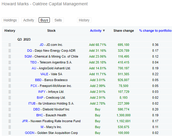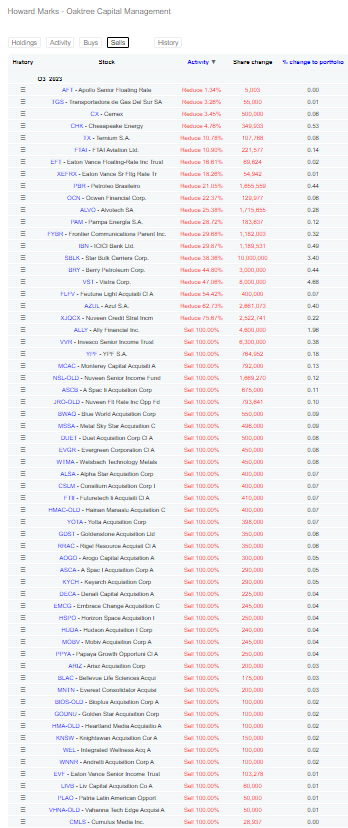Here is the list of sales and purchases from Howard Marks.