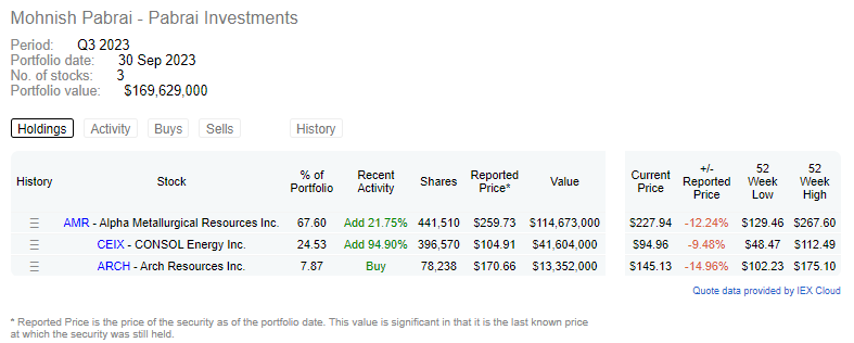 - He has also added to AMR and CEIX (an energy company).