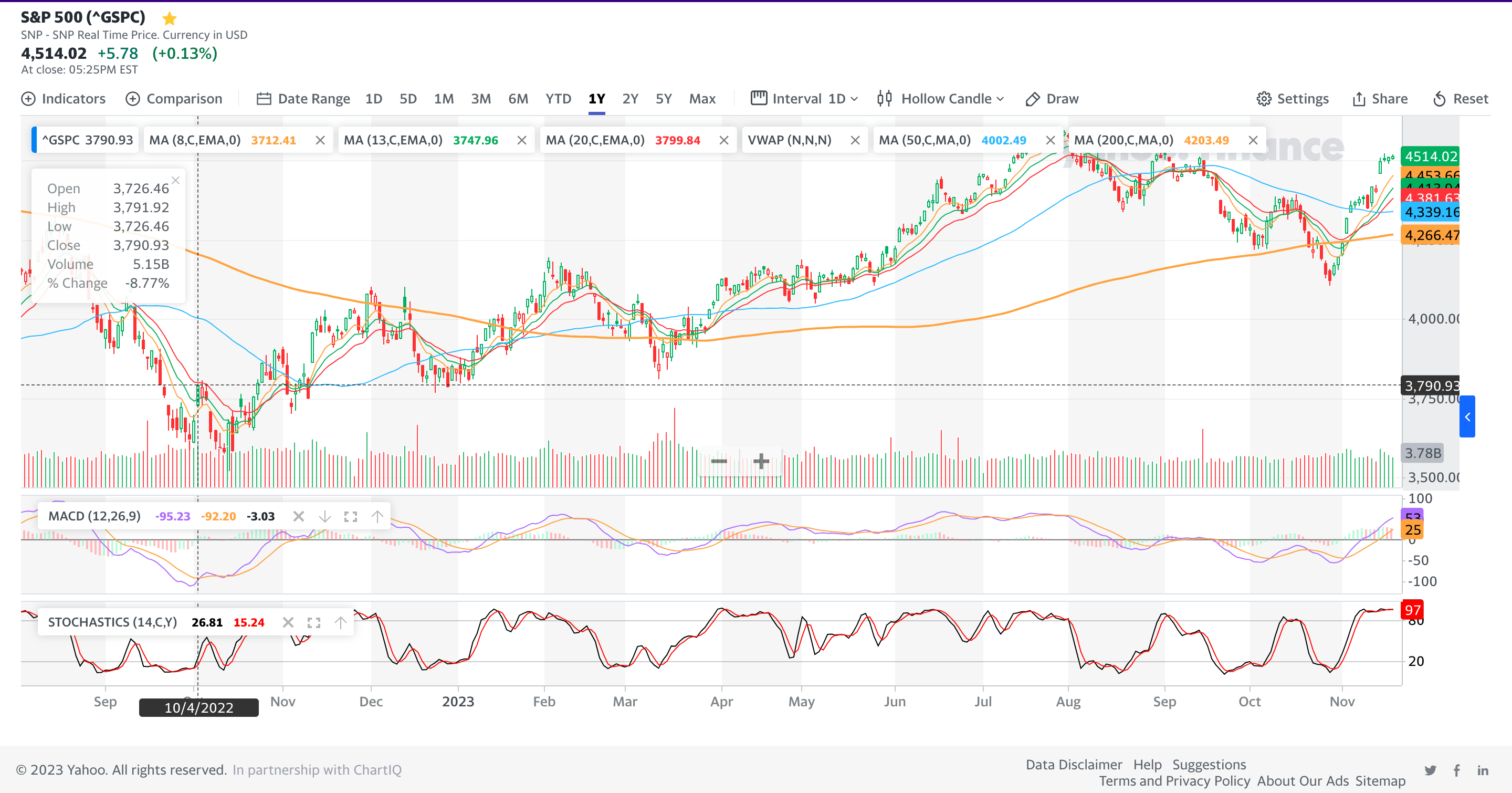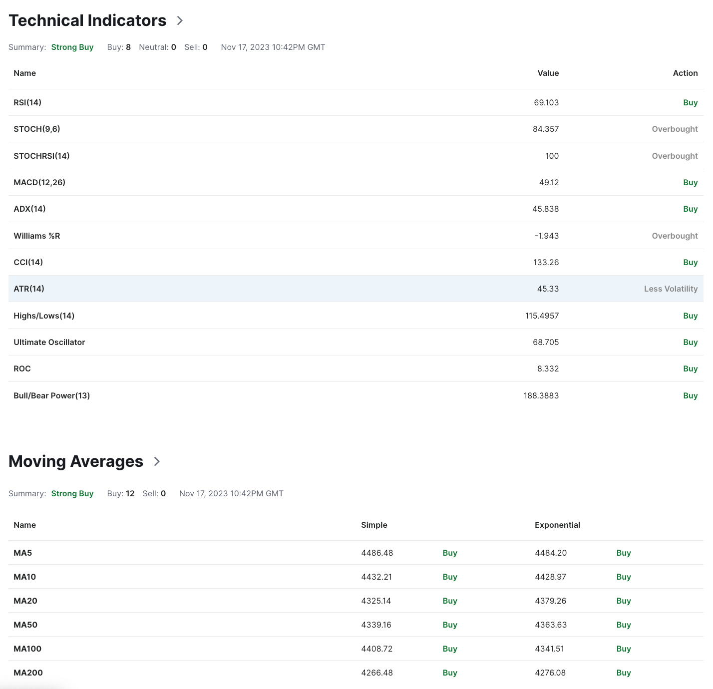 From the 1D technical indicators above, there are a total of 20 (Buy), 0 (Sell) and 0 (Neutral). Investing recommends the “STRONG BUY” recommendation based on the technical indicators above (1D chart for S&P500).