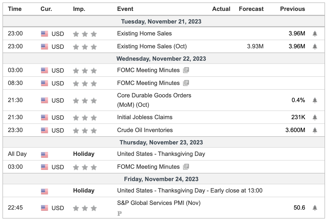 The US will be celebrating Thanksgiving this coming week from 23 Nov 2023.