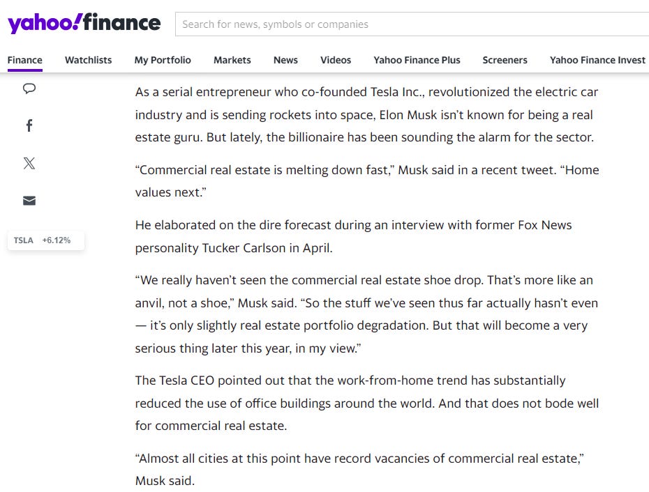 "I think there’s still quite a few shoes to drop on the bad credit situation. Commercial real estate, obviously, is in terrible shape. You know, credit card interest rates are usurious with over 20% interest rates, which, over time becomes extremely punishing."