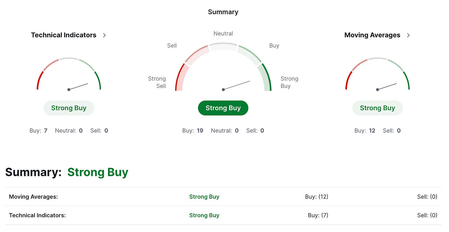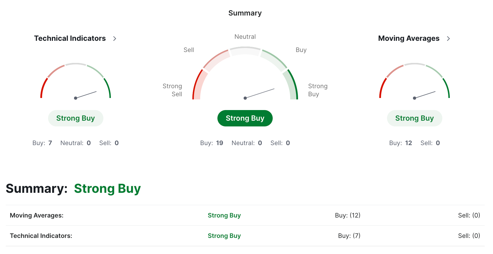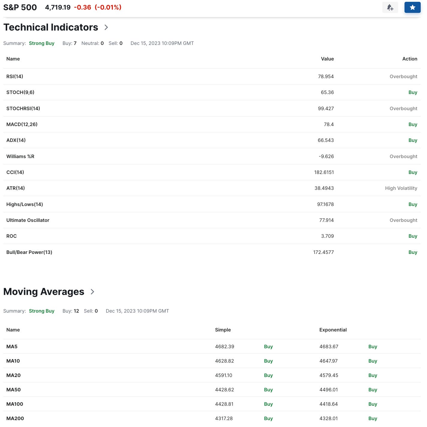 From the 1D technical indicators above, there are a total of 19 (Buy), 0 (Sell) and 0 (Neutral). Investing recommends the “STRONG BUY” recommendation based on the technical indicators above (1D chart for S&P500).