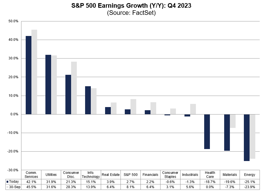 $SPX is expected to report Y/Y earnings growth of 2.7% for Q4 2023, which is below the estimate of 8.1% earnings growth on September 30.