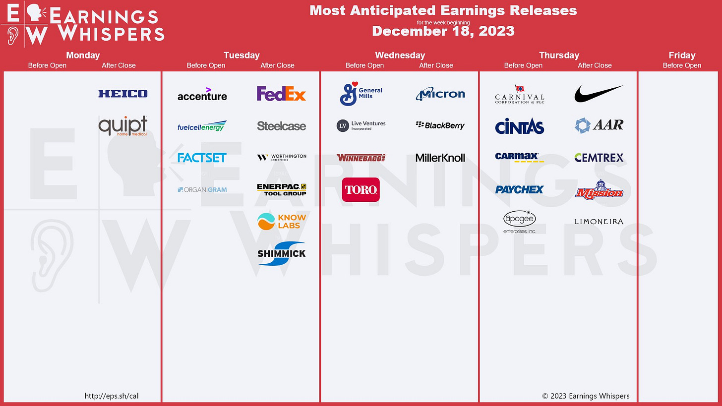 Preview of the week starting 18 Dec 2023 - FedEx on a stellar run