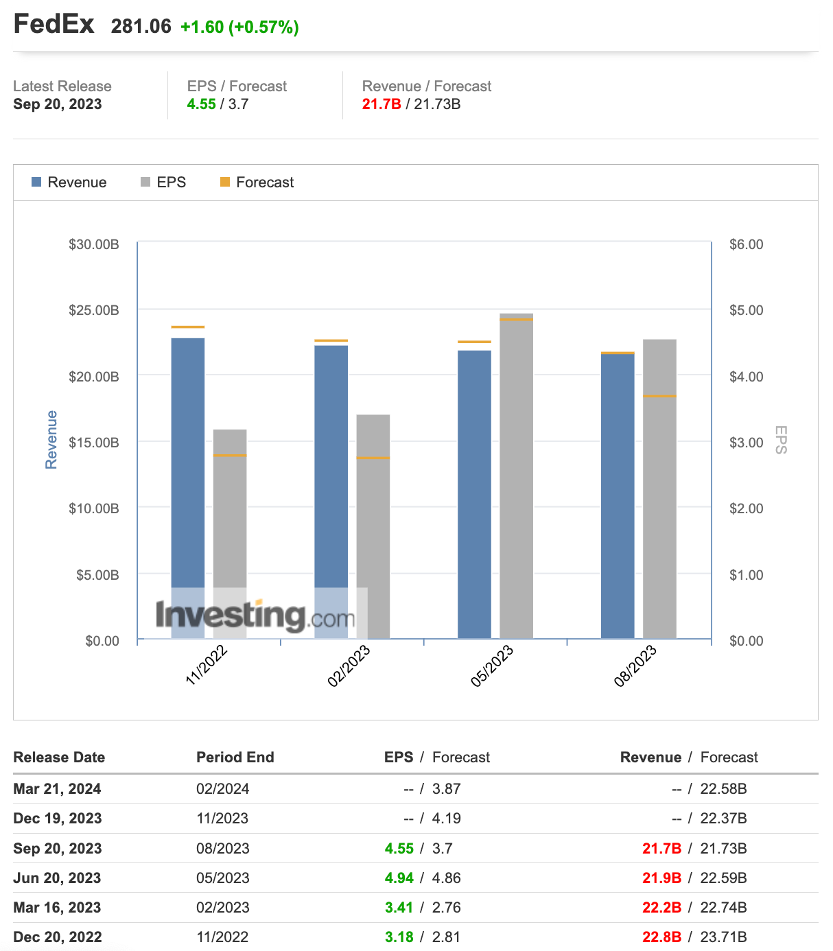 For the coming earnings, the forecast for the EPS and Revenue are 4.19 and $22.37B respectively. Can FedEx continue its stellar performance following the earnings?
